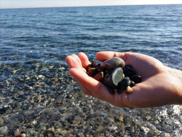 道ばたに転がっている石を